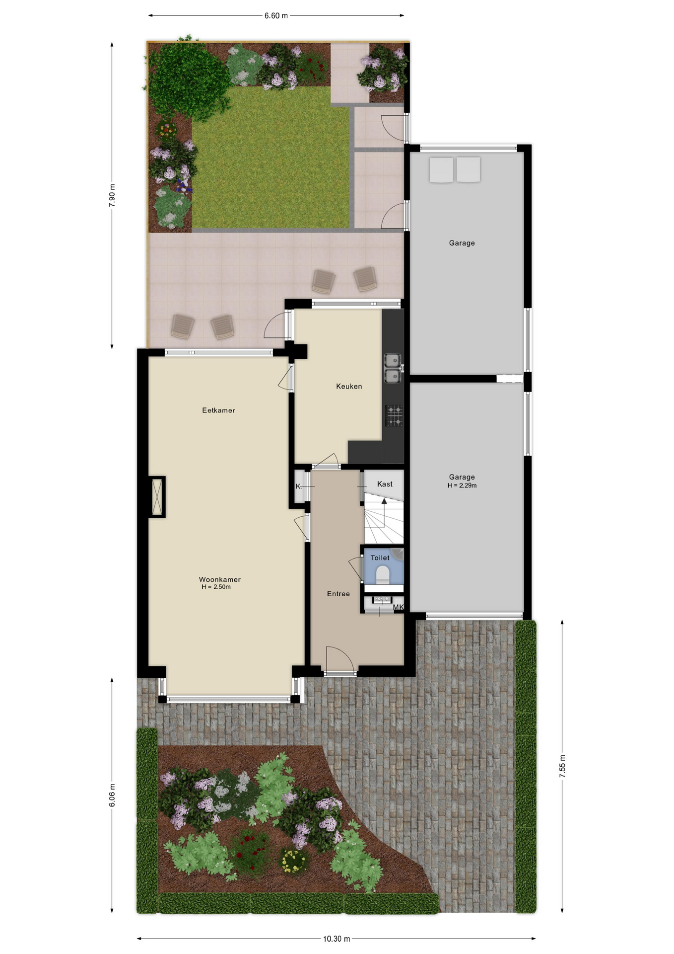- de woning is voorzien van een dubbele garage;