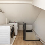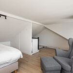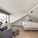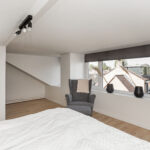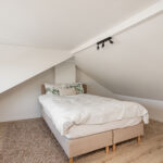 Op de eerste verdieping vind je harmonie in de twee goed bemeten slaapkamers, een apart toilet en een badkamer die uitnodigt tot relaxen met luxe spotjes, een wastafelmeubel en een ruime inloopdouche. De overloop verbindt de ruimtes op een naadloze manier. De tweede verdieping onthult een open zolder, momenteel de master bedroom met dakkapel, waar ook de cv-installatie discreet opgesteld staat. Met in totaal drie slaapkamers is de indeling ideaal voor uiteenlopende woonwensen.