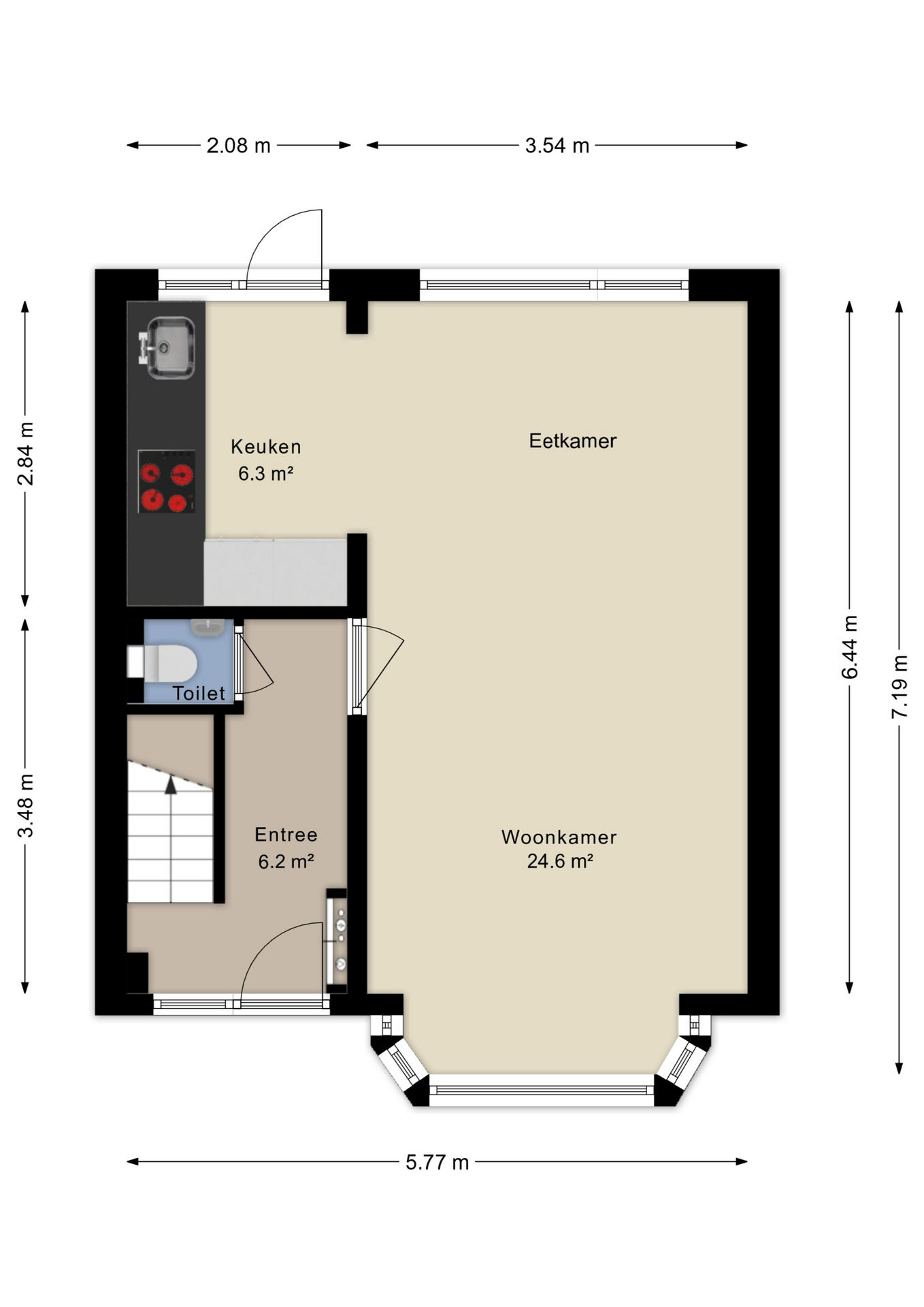 - Erker in de woonkamer zorgt voor extra ruimte en lichtinval.