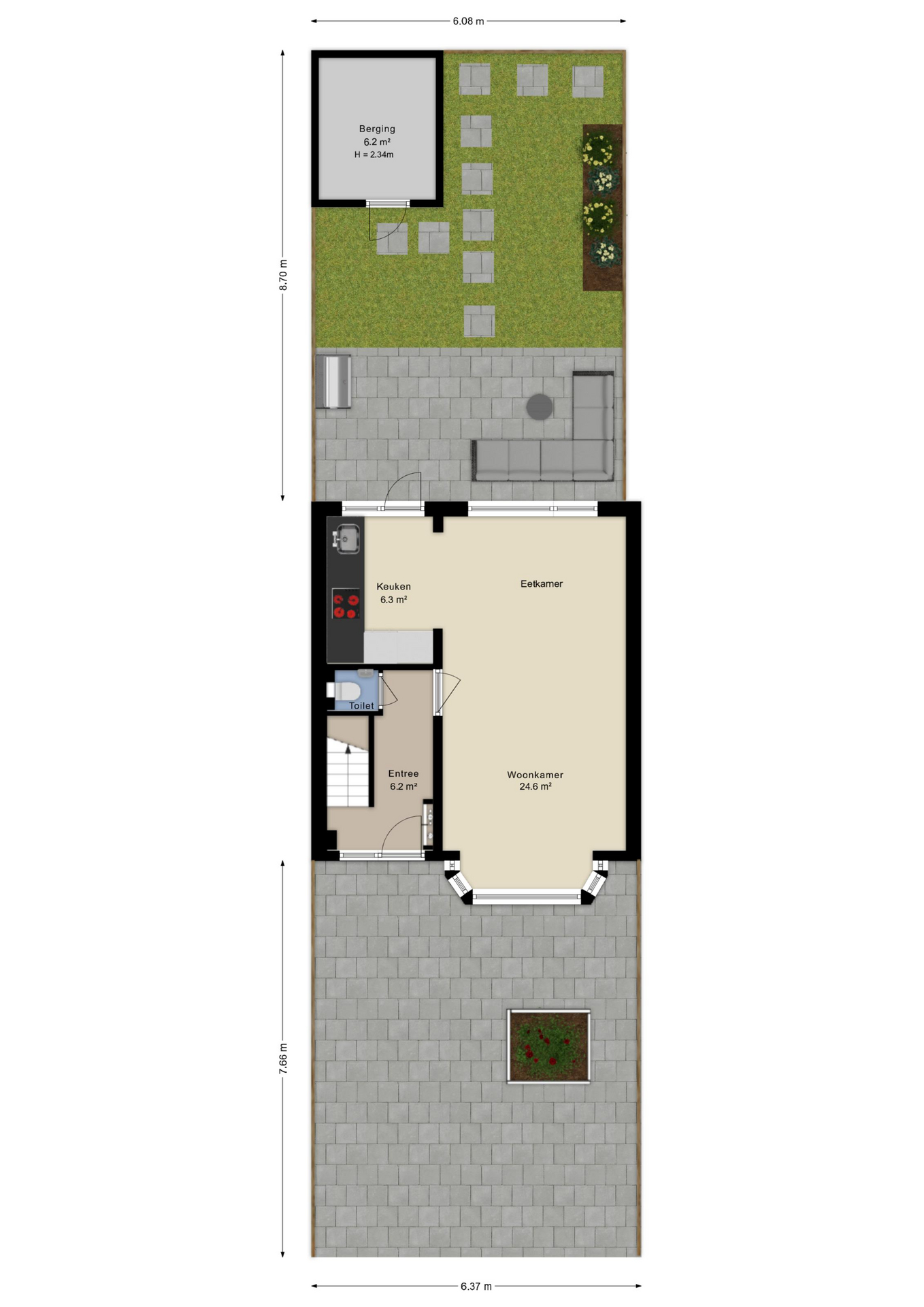 - De achtertuin ligt op het westen: geniet van de avondzon na een werkdag.