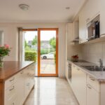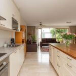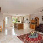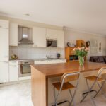 De open keuken is een droom voor elke thuiskok met zijn moderne inbouwapparatuur en stijlvolle eiland. Het zal het middelpunt vormen voor gezellige etentjes en lange avonden kokkerellen. De aansluitende woonkamer baadt dankzij de grote ramen in het natuurlijk licht en biedt een heerlijk uitzicht op de rustgevende tuin, gelegen op het westen, waar de zon tot in de late uurtjes te genieten is.