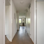 Via de centrale hal bereik je alle vertrekken, waaronder een ruime badkamer met douche, ligbad en wastafel, een separaat toilet, en een inpandige berging met opstelplaatsen voor een wasmachine, droger en warmtewisselaar welke recent vernieuwd is. Aan de voorzijde van het appartement bevinden zich twee ruime slaapkamers, beide met uitzicht op de binnentuin. Het terras, gelegen op het zonnige zuiden, biedt een vrij uitzicht op de gezamenlijke binnentuin en de molen.