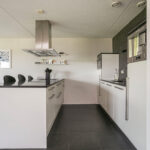 Entree met toegang tot de lichte en ruim opgezette woonkamer, twee slaapkamers, badkamer, toilet en berging. De sfeervolle woonkamer beschikt over grote raampartijen die zorgen voor veel lichtinval en een vrij uitzicht. De eetkamer grenst aan de open keuken met kookeiland en inbouwapparatuur, waaronder een oven, vaatwasser en een kookplaat met afzuigkap.