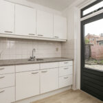 Via de entree kom je in de hal met toilet, trapopgang en handige trap-/kelderkast met de meterkast. De lichte woonkamer heeft een prettig uitzicht op de achtertuin en biedt ruimte voor een gezellige zit- en eethoek. Aan de achterzijde ligt de keuken, voorzien van een eenvoudig keukenblok, een wasmachineaansluiting en geeft toegang naar de achtertuin.