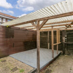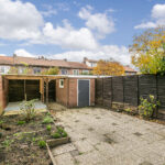 De onderhoudsvriendelijke achtertuin ligt heerlijk op het zuidwesten en is grotendeels betegeld. Achterin bevindt zich een vrijstaande stenen berging met een golfplaten overkapping. De tuin is bereikbaar via een achterom en beschikt over een buitenkraan.
