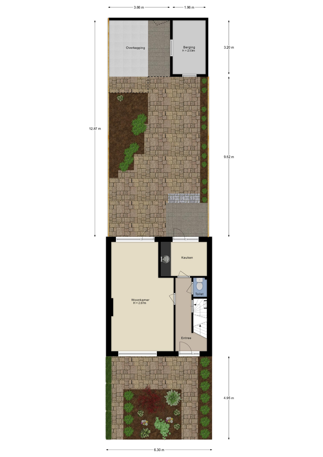 - Zonnige tuin op het zuidwesten met berging en achterom.