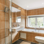 De badkamer heeft vloerverwarming, een designradiator, een aparte douche en een bubbelbad.