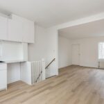 Gemeenschappelijke trapopgang voor twee appartementen op eerste en tweede verdieping.
