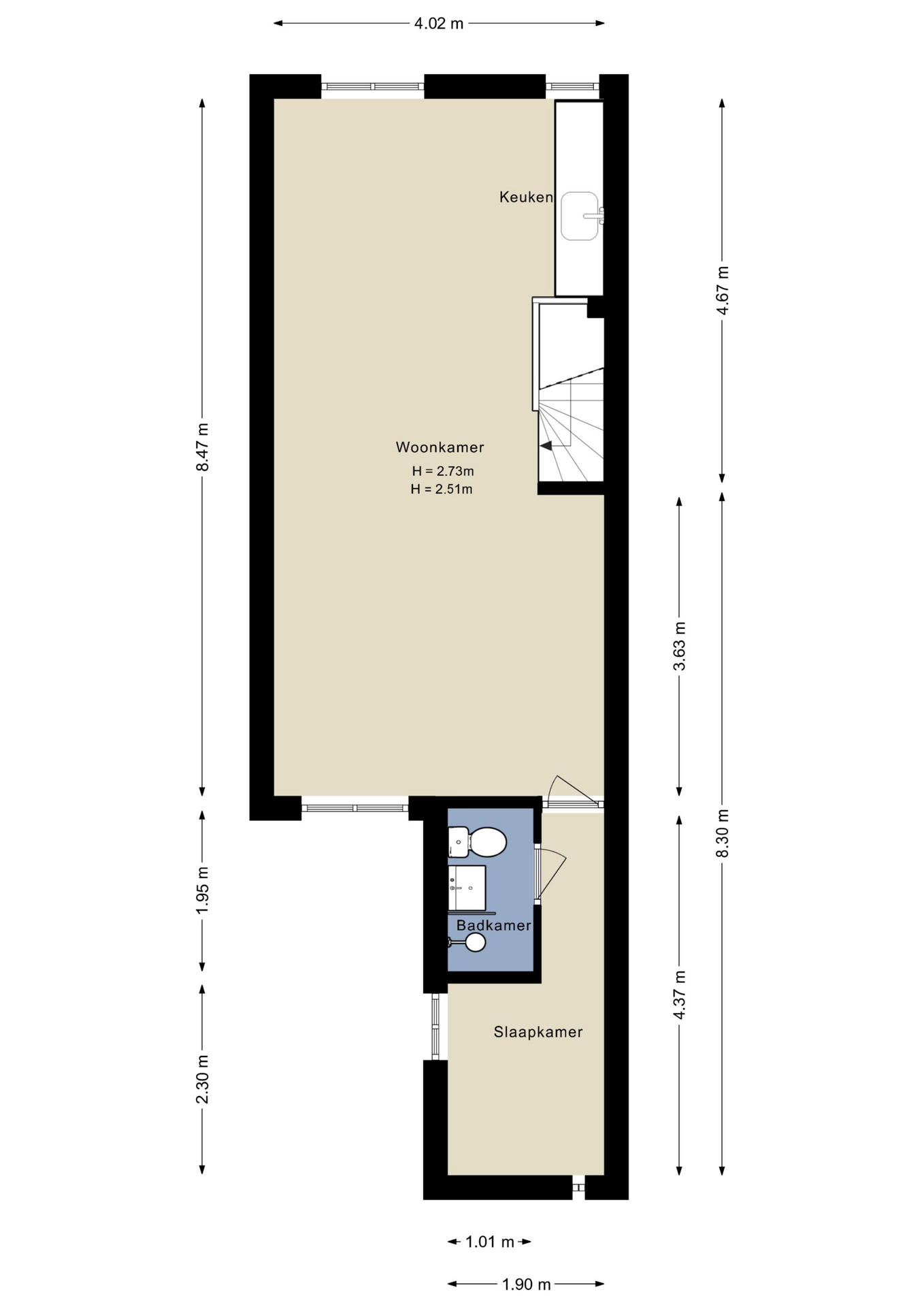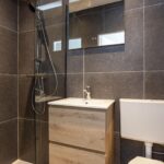 Trapopgang met toegang tot de woonkamer. Vanuit de ruime woonkamer van 34 m² heb je toegang tot de slaapkamer met badkamer en suite. De in 2025 vernieuwde badkamer is voorzien van wastafelmeubel en een inloopdouche met regendouche. De keuken die ook in 2025 is vernieuwd beschikt over een 4-pitskookplaat en afzuigkap.