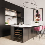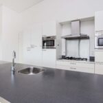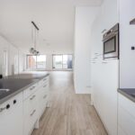 Vanuit de hal krijg je toegang tot alle binnenruimtes van het appartement. De slaapkamer aan de dakterraszijde heeft een badkamer en suite voorzien van inloopdouche, dubbele wastafel en extra toilet. Separate wasruimte en tevens separate toiletruimte in de hal. Gang met toegang tot de ruime living met veel raampartijen, lichtinval en twee schuifpuien met toegang tot dakterras. De open keuken beschikt over diverse inbouwapparatuur en een spoeleiland met bar.