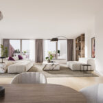 - zeer riante living met veel ramen en twee schuifpuien