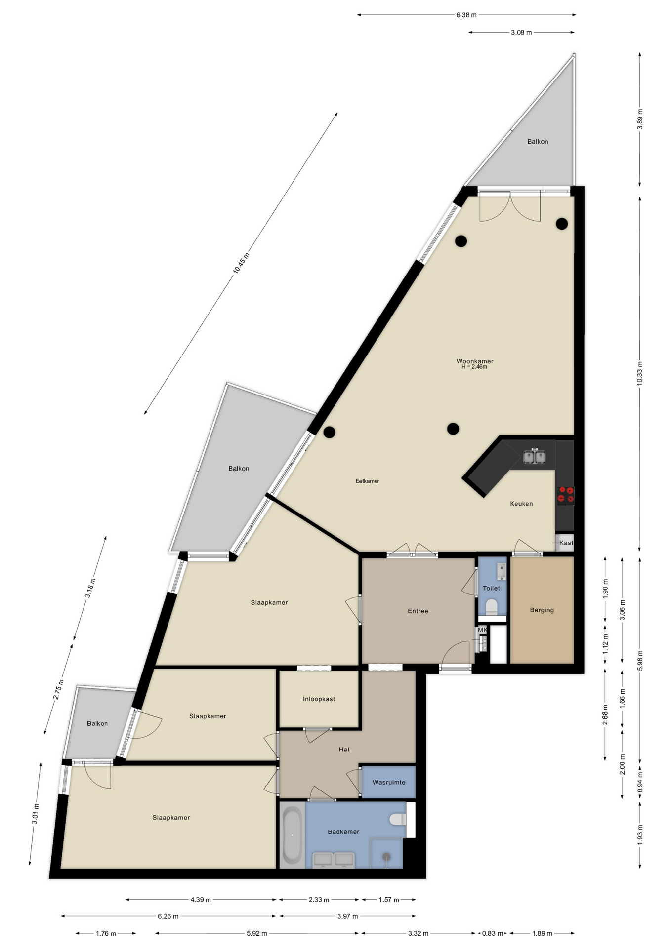- Drie balkons