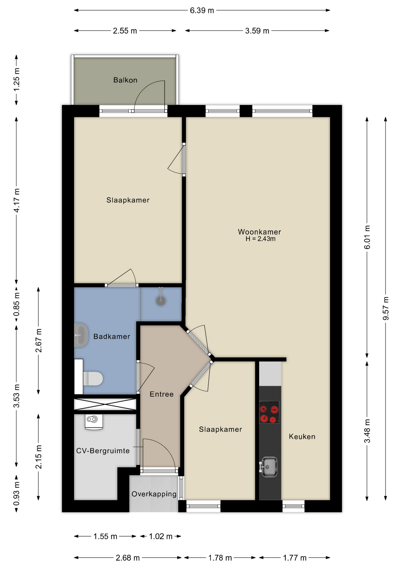 - Woonoppervlakte: 59m2;