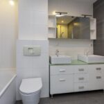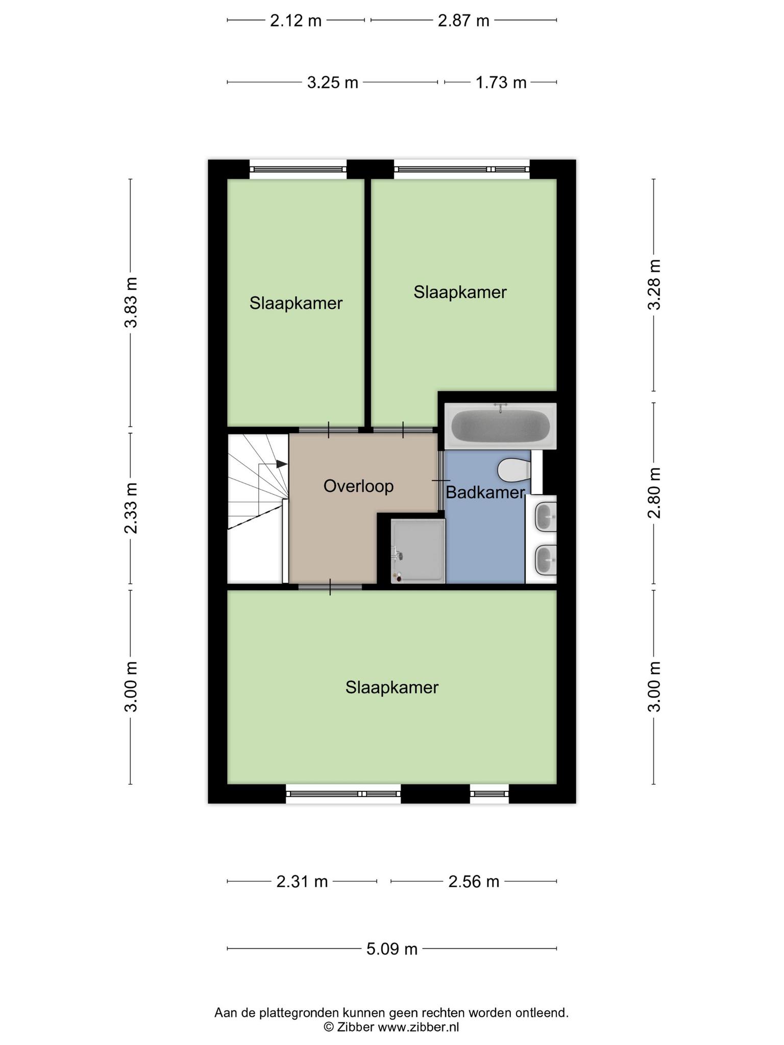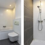 De overloop biedt toegang tot drie slaapkamers van ca. 15 m², 9 m² en 8 m², alsmede de badkamer. De badkamer is modern uitgevoerd en beschikt over een dubbele wastafel, ligbad en toilet.