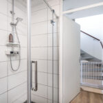 De badkamer (ca. 5m²) beschikt over een ruime douche met glazen deur, een zwevend toilet, een houtlook wastafelmeubel, designradiator en een heerlijk ligbad. De eerste verdieping is afgewerkt met een laminaatvloer (m.u.v. de badkamer).