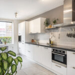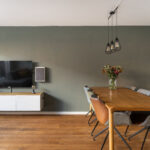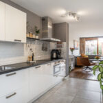 Aan de voorzijde vind je de ruime en lichte keuken met een composiet werkblad en witte kastfronten. De keuken is volledig uitgerust met een vaatwasser, koel-/vriescombinatie, vierpits inductiekookplaat, RVS-afzuigkap, combi-oven/magnetron, wijnklimaatkast – ideaal voor de borrel in het weekend. Er is bovendien genoeg plek voor een grote eettafel, perfect voor gezellige diners met vrienden of familie.