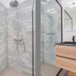 Entree, tochtportaal voorzien van granieten vloer en authentiek tegelwerk, gang. Moderne toiletruimte met hangend toilet en fonteintje. Fraai betegelde badkamer met inloopdouche met glazen scherm en wastafelmeubel. Sfeervolle woonkamer met eikenhouten vloerdelen, hoge plinten, schouw en openslaande deuren naar de tuin. Aansluitend de halfopen, vernieuwde keuken in hoekopstelling. De keuken is voorzien van inductiekookplaat, afzuigkap, koelkast, oven en vaatwasser.