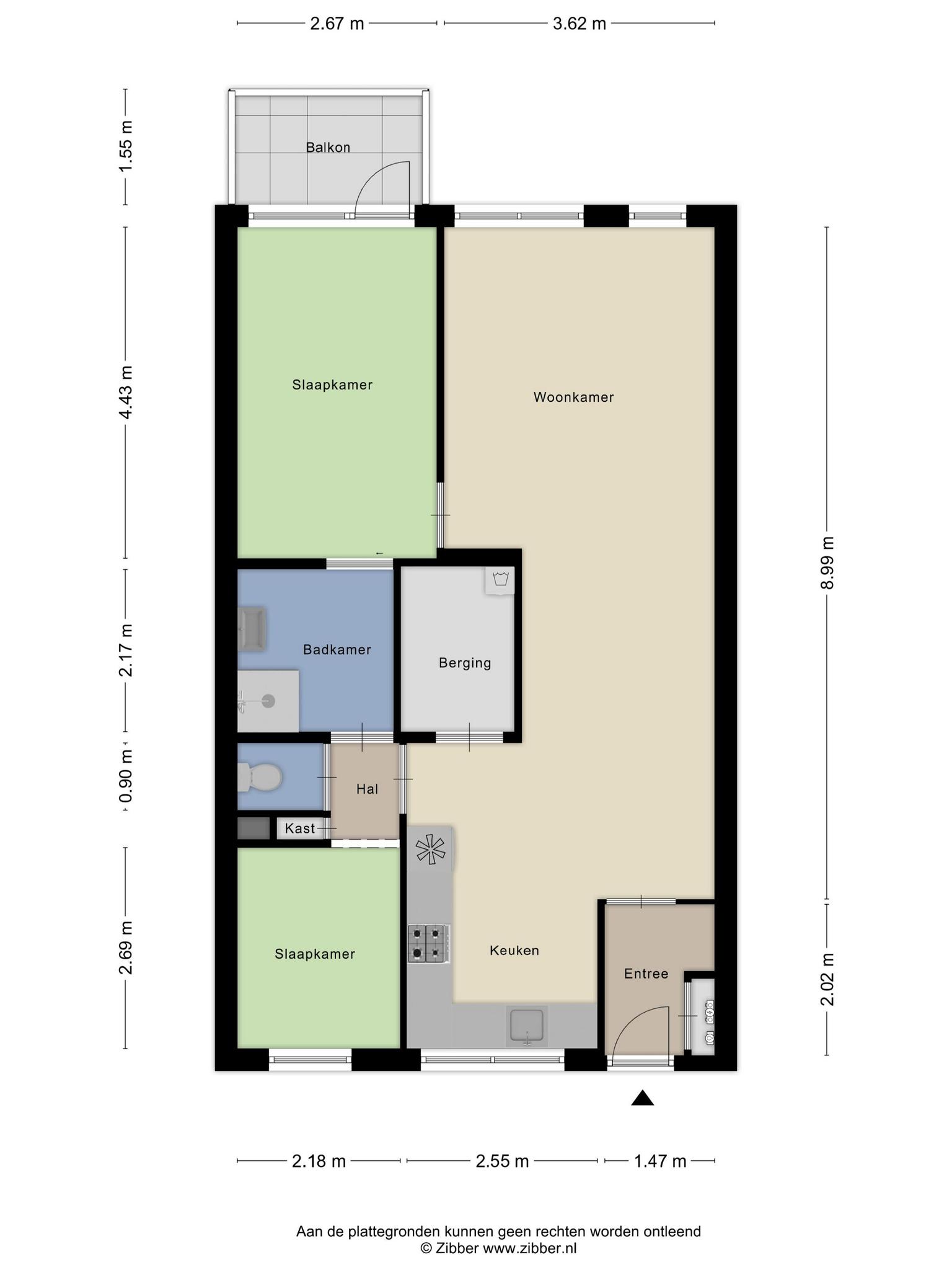 - Twee slaapkamers;