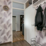 Hal/entree met meterkast en praktische inpandige berging met wasmachineaansluiting.