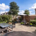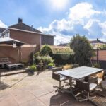 De zonnige achtertuin, gelegen op het zuidoosten, is ingericht met een ruim terras, achterom, garage en biedt voldoende privacy. Aan de voorzijde van de woning is er ruimte om te parkeren op eigen terrein.
