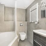 De nette badkamer op deze verdieping is uitgerust met een ligbad/douchecombinatie, toilet en wastafel.