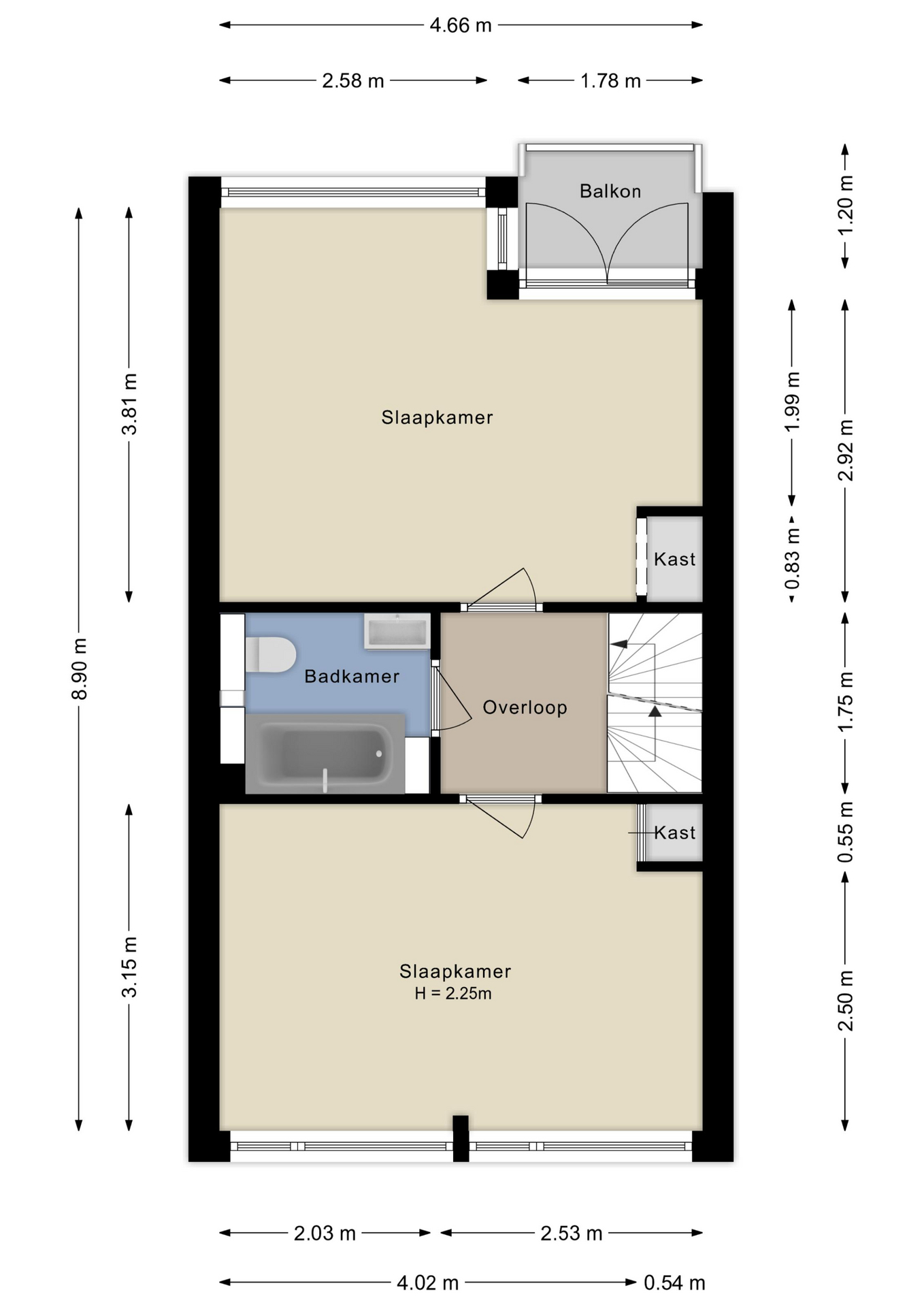 Op deze verdieping vind je twee ruime slaapkamers, beide voorzien van kunststof kozijnen en inbouwkasten. Slaapkamer 2 geeft daarnaast toegang tot het balkon, waar je ’s ochtends heerlijk in de zon kunt zitten.