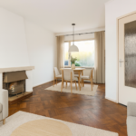 - Doorzonwoonkamer met haard en toegang tot de tuin.