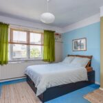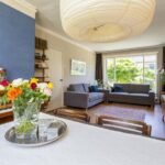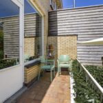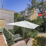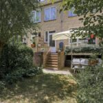 De voortuin is voorzien van volwassen struiken en deze liggen aan beide kanten van de trap naar je voordeur. Je deelt deze trapopgang met de buren van nummer 11. Een zonnescherm zorgt ervoor dat de zon in de zomer niet te fel je woonkamer binnen schijnt.