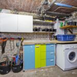 In de achtergevel van de garage heb je twee ramen die over de tuin uitkijken. Via een tussendeur bereik je een aparte ruimte met aansluitpunten voor je wasmachine. Hier is ook de C.V.-installatie geplaatst.