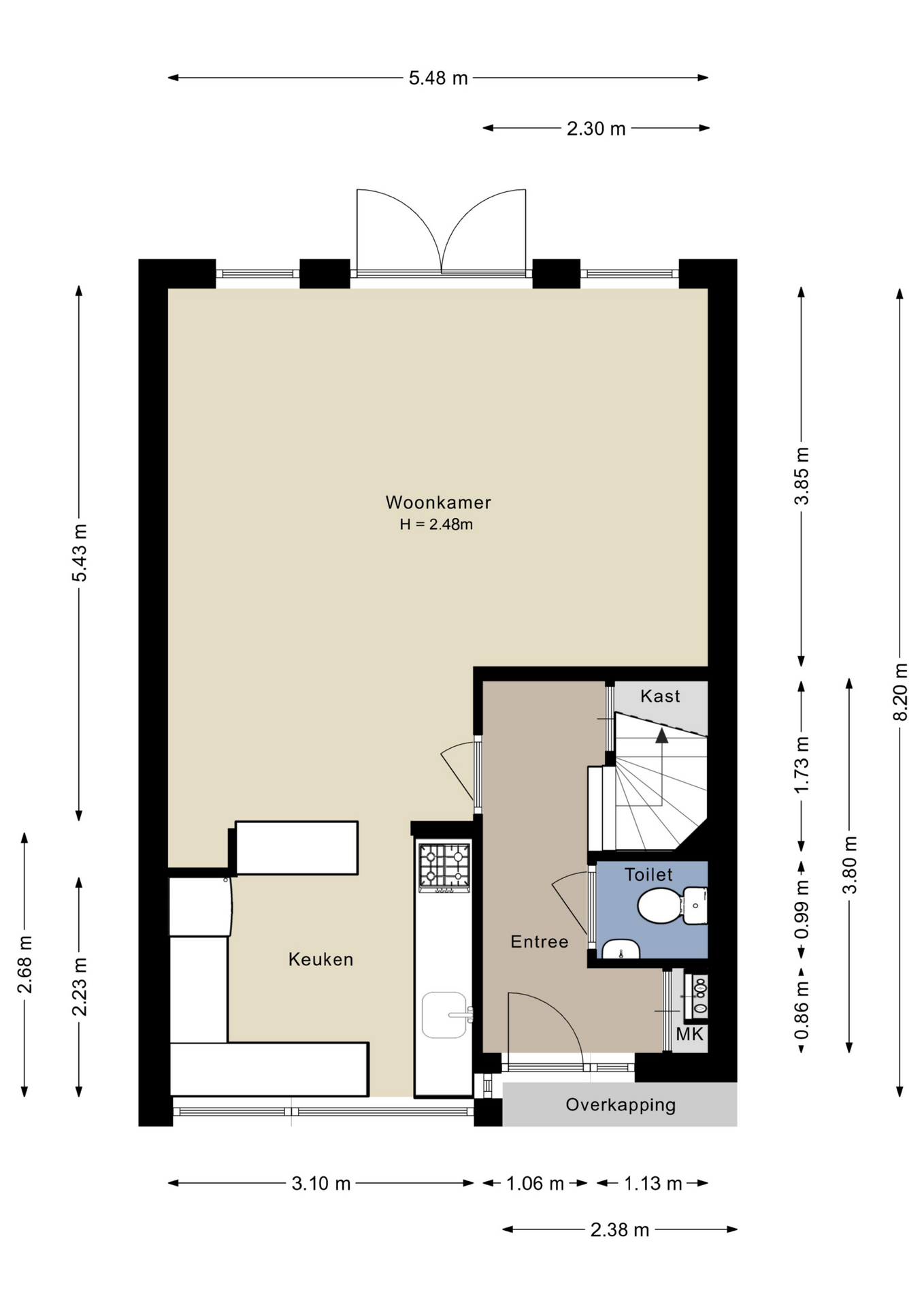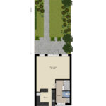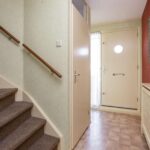 De gang van de woning vormt de verbinding tussen de ruimtes. Hier vind je de meterkast, de toiletruimte voor gemak, en de trapopgang die naar de bovenverdieping leidt. Alles is overzichtelijk en praktisch bereikbaar. Vanuit de gang heb je toegang tot de keuken en de woonkamer.