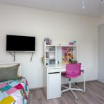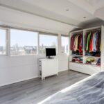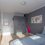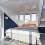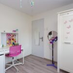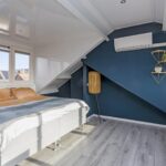 De overloop op de tweede verdieping geeft toegang tot een bergruimte en de derde slaapkamer. De slaapkamer is lekker ruim en biedt plek aan een tweepersoonsbed en eventuele kledingkast. Met een dakkapel aan twee verschillende zijden is het hier heerlijk licht. Ook in deze slaapkamer ligt een keurige laminaatvloer en is airconditioning aanwezig.