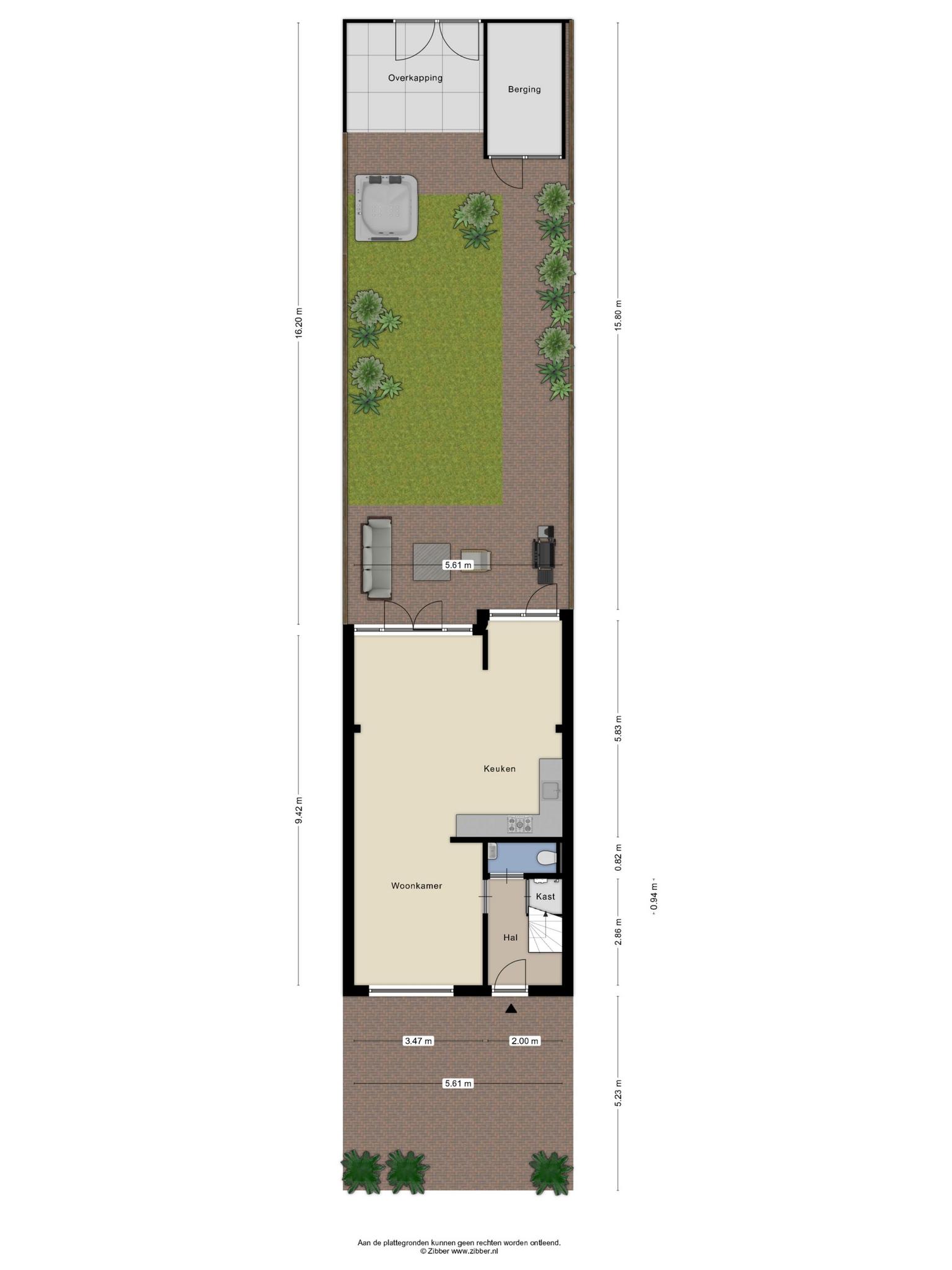 - Diepe achtertuin op het zuiden