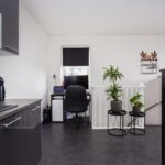 Hier bevindt zich de royale woonkamer met open inbouwkeuken. De keuken is modern uitgevoerd en voorzien van een ingebouwde kookplaat en afzuigkap. Via de woonkamer is het balkon op het westen te bereiken met vrij uitzicht over de wijk.