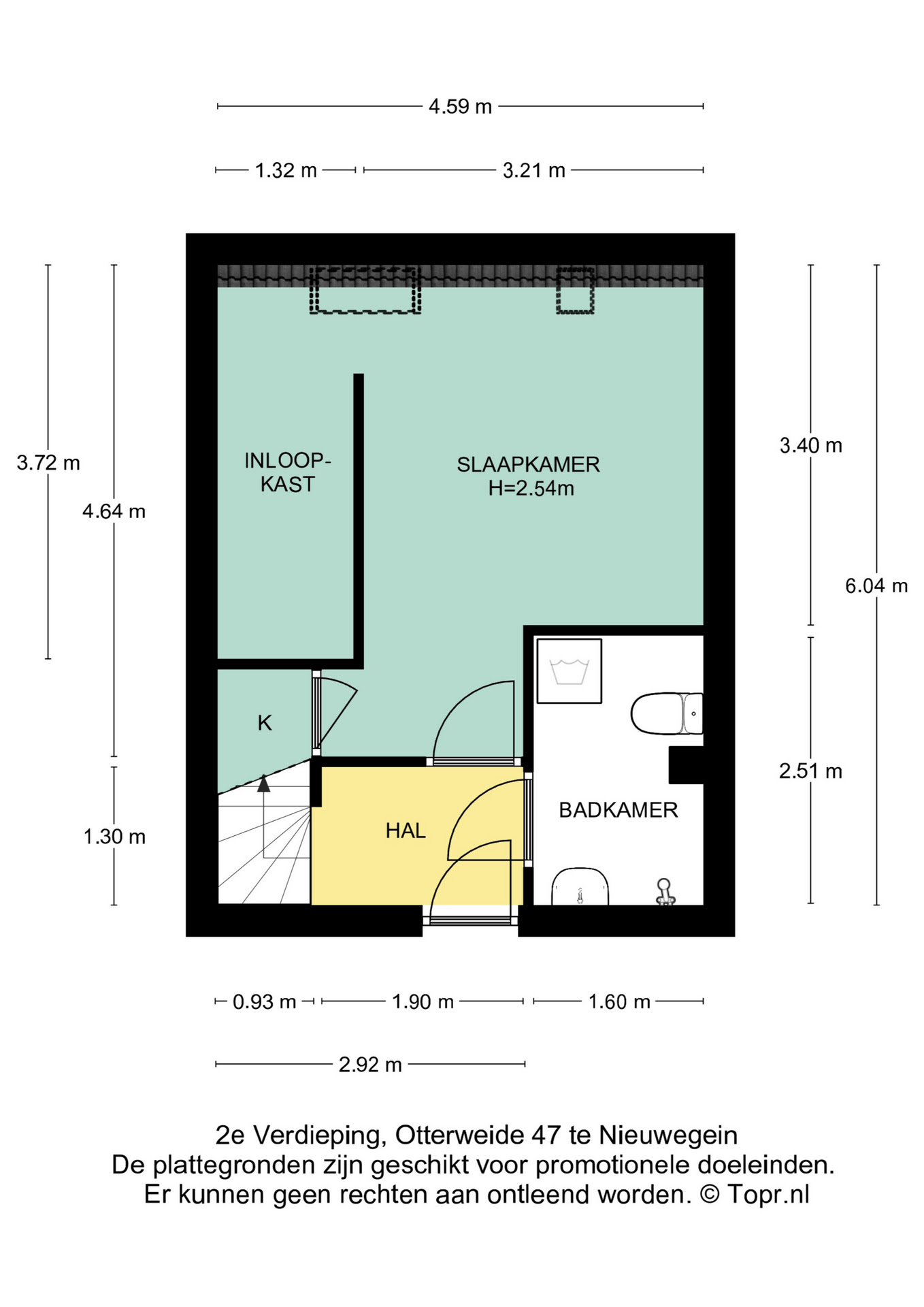 Via de entree/hal zijn de trapopgang naar de woonkamer, de riante slaapkamer en de nette badkamer te bereiken. De slaapkamer met inloopkast is maar liefst 17 m2 groot. De badkamer is uitgevoerd in een neutrale kleurstelling en beschikt over een douche, toilet en wastafel.