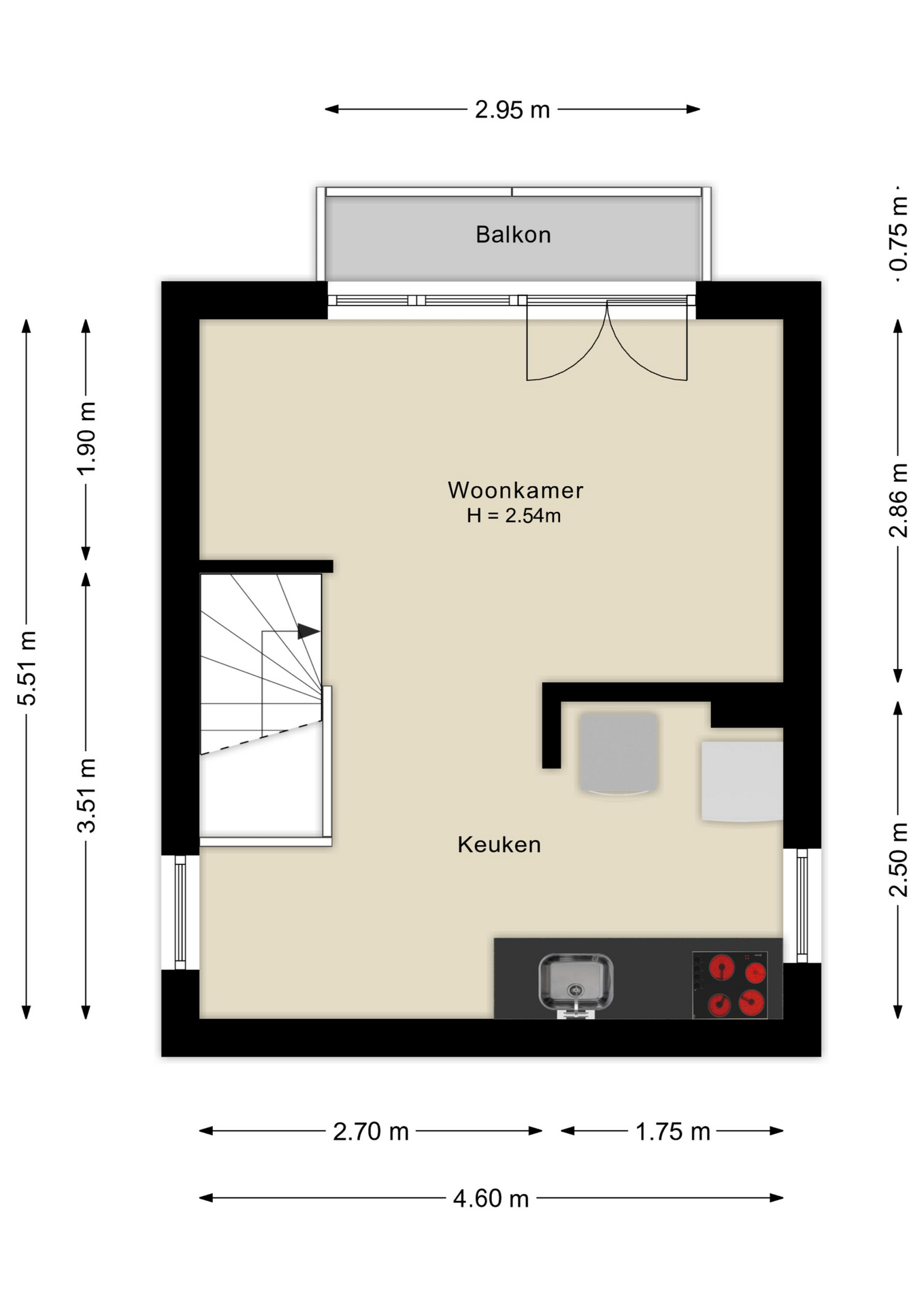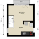 Op deze verdieping vind je de royale woonkamer met een geïntegreerde, moderne keuken. De keuken is voorzien van een ingebouwde kookplaat en afzuigkap. Vanuit de woonkamer loop je naar het balkon op het westen, waar je geniet van een vrij uitzicht over de wijk.