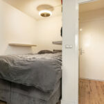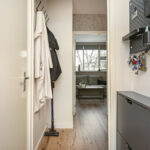 Bij binnenkomst betreed je de hal. De entree/hal leidt je naar de trap die toegang geeft tot de fijne, lichte woonkamer, maar ook naar de slaapkamer én zeer moderne en afgewerkte badkamer. Deze badkamer is uitgerust met douche, toilet, wastafel en wasmachine aansluiting.