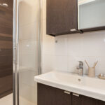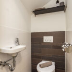 Hal/entree met apart toilet, wasruimte met C.V.-ketel. slaapkamer en keurige badkamer met douche en wastafelmeubel.