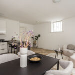 Sfeervolle en lichte woonkamer met diverse, leuke raampartijen en een moderne,…