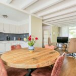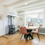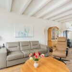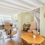 Via de ruime voortuin bereik je de hal van de woning. Hier vind je toegang tot de toiletruimte, de meterkast en de toegang tot de lichte woonkamer met open keuken. In de woonkamer zorgen de grote ramen en openslaande deuren voor veel lichtinval. Daarnaast zorgt de houtkachel voor veel sfeer en warmte.