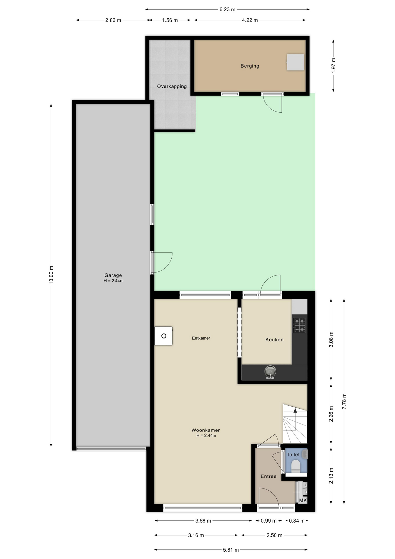 Ruime garage aanwezig van 13 meter lang
