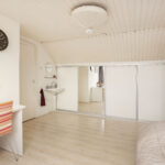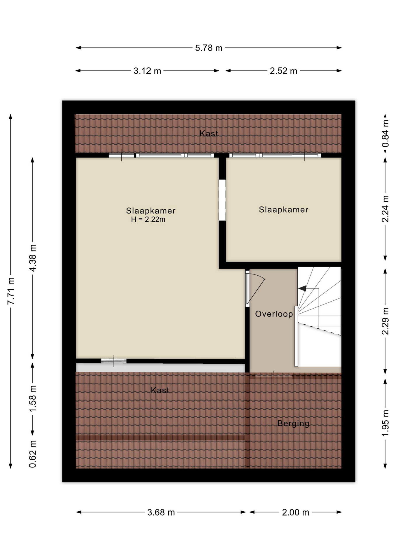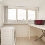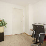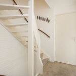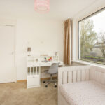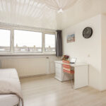 De vaste trap leidt naar de tweede verdieping, waar zich een overloop bevindt met toegang tot een grote bergruimte onder de schuine kap én een aparte wasruimte met aansluiting voor wasmachine en de CV-installatie. Daarnaast is er een ruime vierde slaapkamer of werkruimte, voorzien van een dakkapel waardoor extra licht en ruimte ontstaat. Deze kamer beschikt tevens over een eigen wastafel, wat de verdieping multifunctioneel inzetbaar maakt.