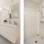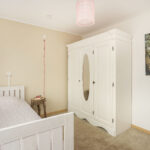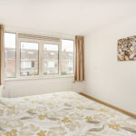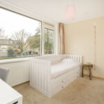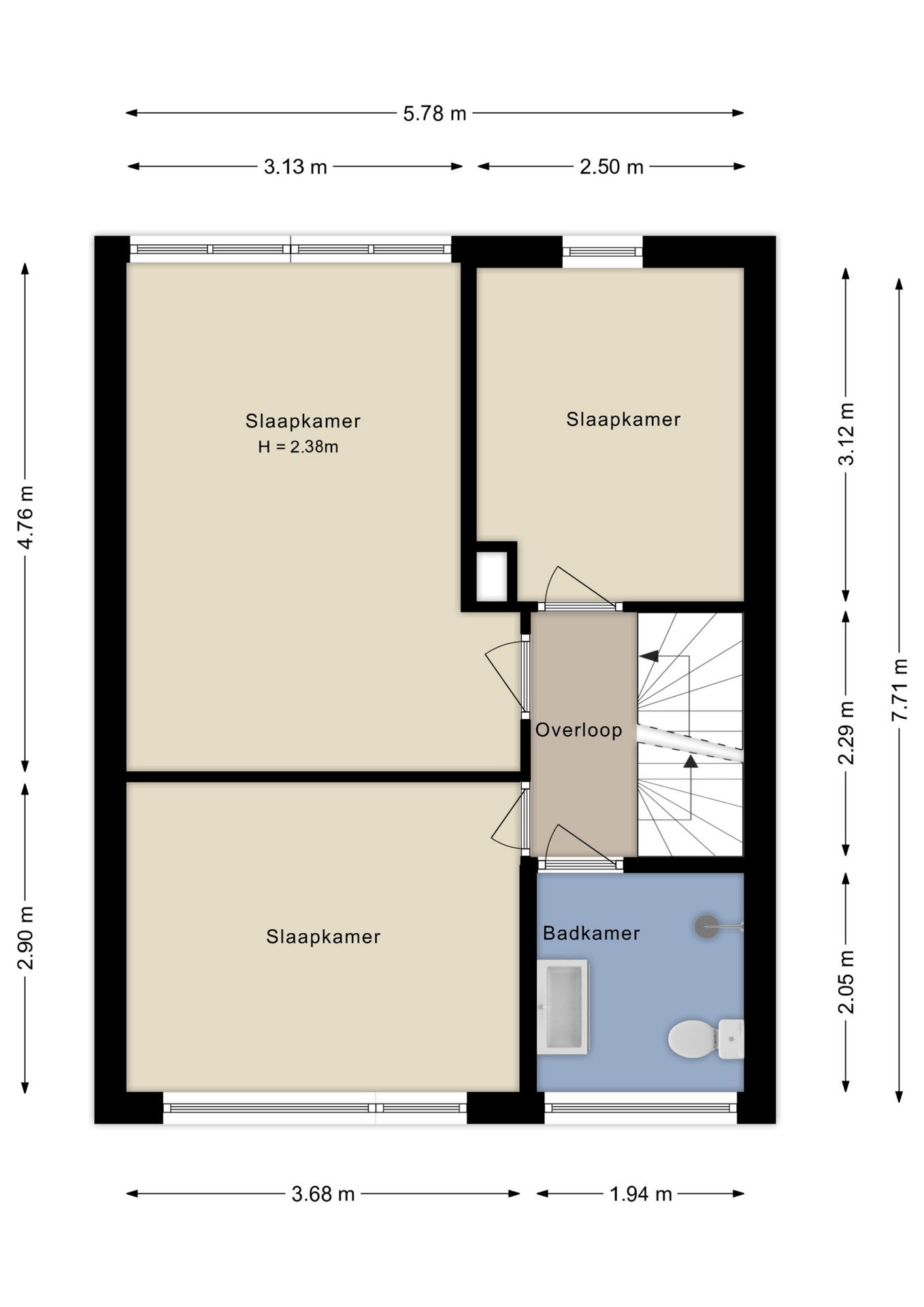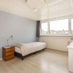 De overloop biedt toegang tot drie slaapkamers en de badkamer. Aan de achterzijde liggen twee fijne slaapkamers, waarvan één bijzonder ruim en voorzien van een vaste kastenwand. De derde slaapkamer bevindt zich aan de voorzijde en kijkt vrij weg. De betegelde badkamer is praktisch ingedeeld en voorzien van een douche, wastafel en een tweede toilet. Dankzij het raam is er natuurlijke ventilatie en daglicht.