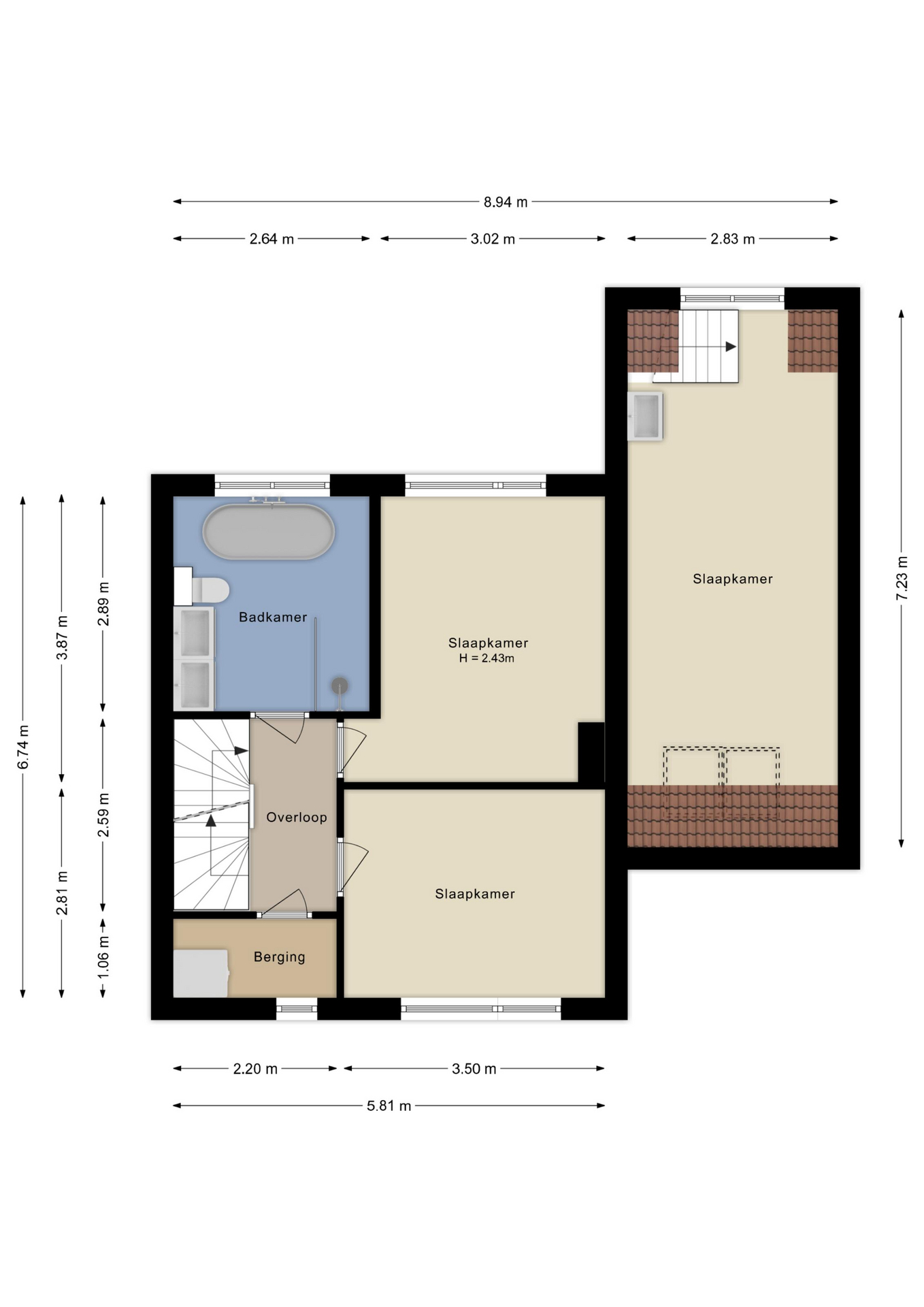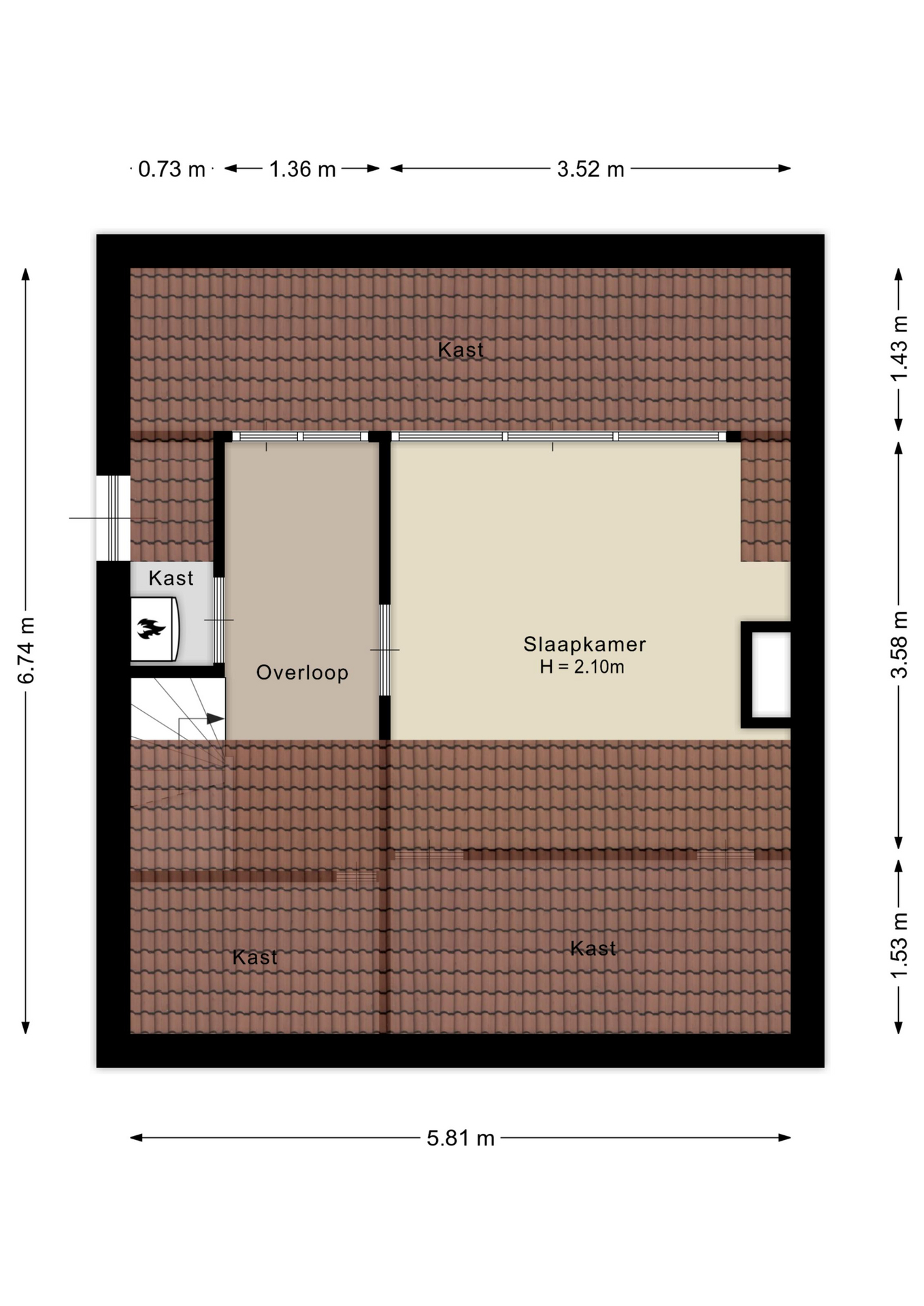 Tweede verdieping: de verrassend grote zolderverdieping biedt ruimte aan de vierde slaapkamer.