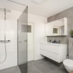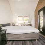 Eerste verdieping: hier zijn twee royale slaapkamers, elk geschikt als kinder-, werk- of logeerkamer. Daarnaast bevindt zich op deze verdieping de badkamer met een inloopdouche, bad, dubbele wastafel, tweede toilet en een fijne uitstraling dankzij de moderne tegels.