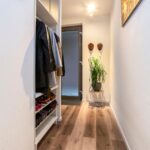 Je komt binnen in de L-vormige hal die is voorzien van een mooie laminaatvloer en ruimte voor jassen/schoenen. De hal geeft toegang tot de woonkamer met open keuken, slaapkamer, het toilet met fonteintje, de meterkast en wasruimte met daarin de wasmachine-aansluiting.