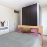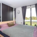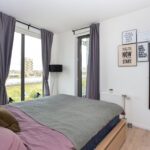 De slaapkamer is heerlijk ruim en licht, heeft drie ramen aan twee zijden. Er ligt een fraaie laminaatvloer en bevindt zich een deur richting de badkamer.