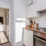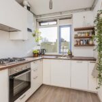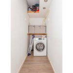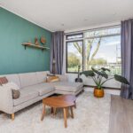 Deze aan de voorzijde van de woning gelegen woonkamer biedt via de grote raampartij uitzicht over een groen parkje met sportfaciliteiten en is licht en verrassend ruim. Vanuit de woonkamer is er toegang tot een ruime inpandige bergruimte, perfect als inloopkast en met aansluiting voor de wasmachine.