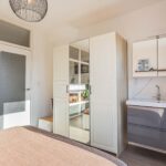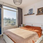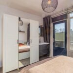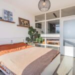 De slaapkamer, die toegankelijk is vanuit de woonkamer, biedt direct toegang tot je privébalkon op het zonnige zuidoosten. Geniet van de ochtendzon met een kopje koffie terwijl je begint aan je dag! Een glazen scheidingswand tussen de woonkamer en slaapkamer biedt zowel privacy als een overvloed aan licht. En in de slaapkamer is een fraai wastafelmeubel geplaatst voor jouw comfort.