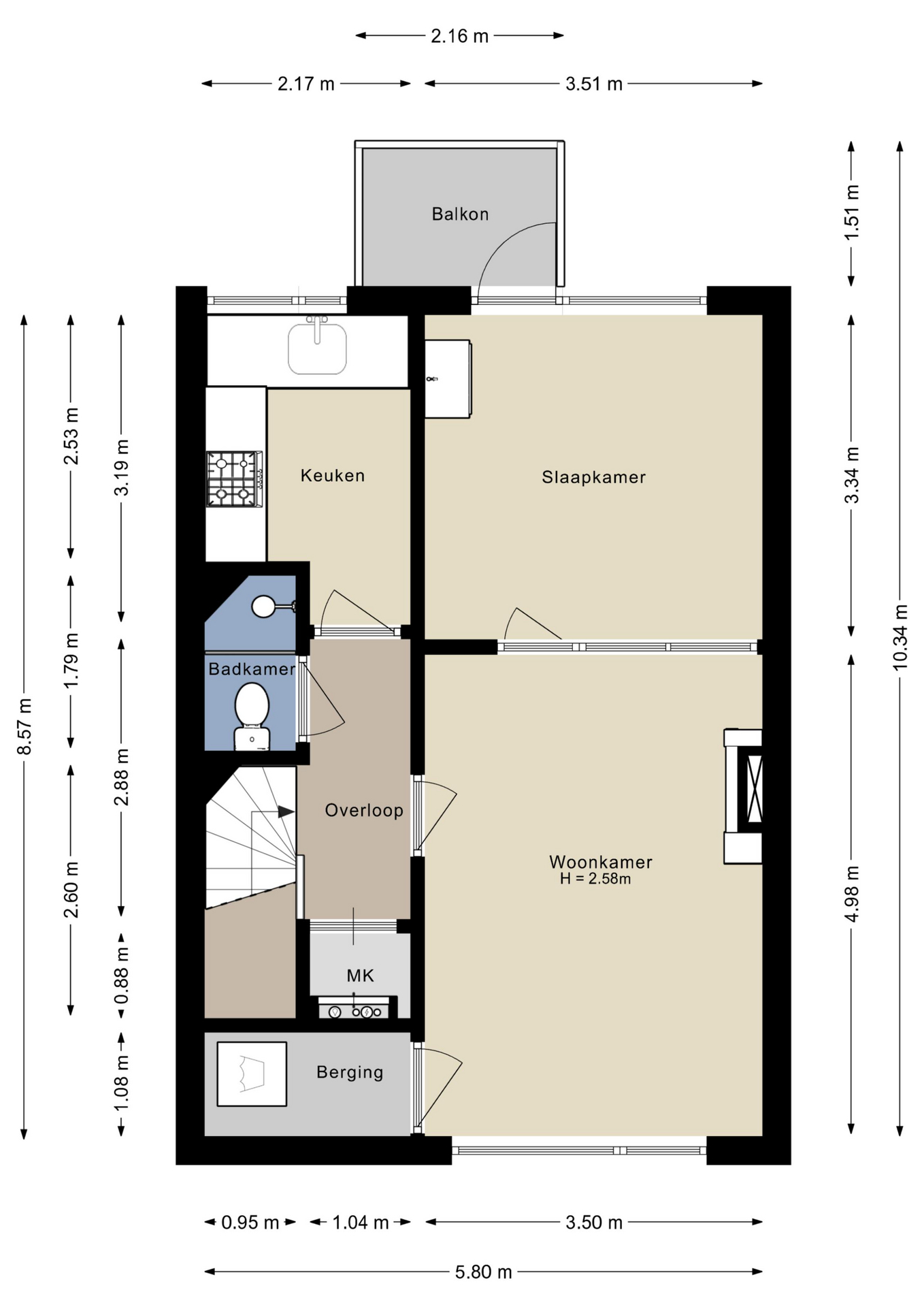 Op de begane grond vind je een aparte berging – ideaal voor het veilig stallen van fietsen en andere spullen.