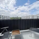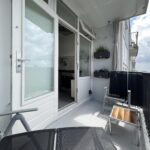 Het balkon bereik je via de keuken. Deze ligt pal op het zuiden, je kunt hier de hele dag genieten van de zon. Vanwege het groen en de bomen tussen de appartementen is dit een oase van rust!